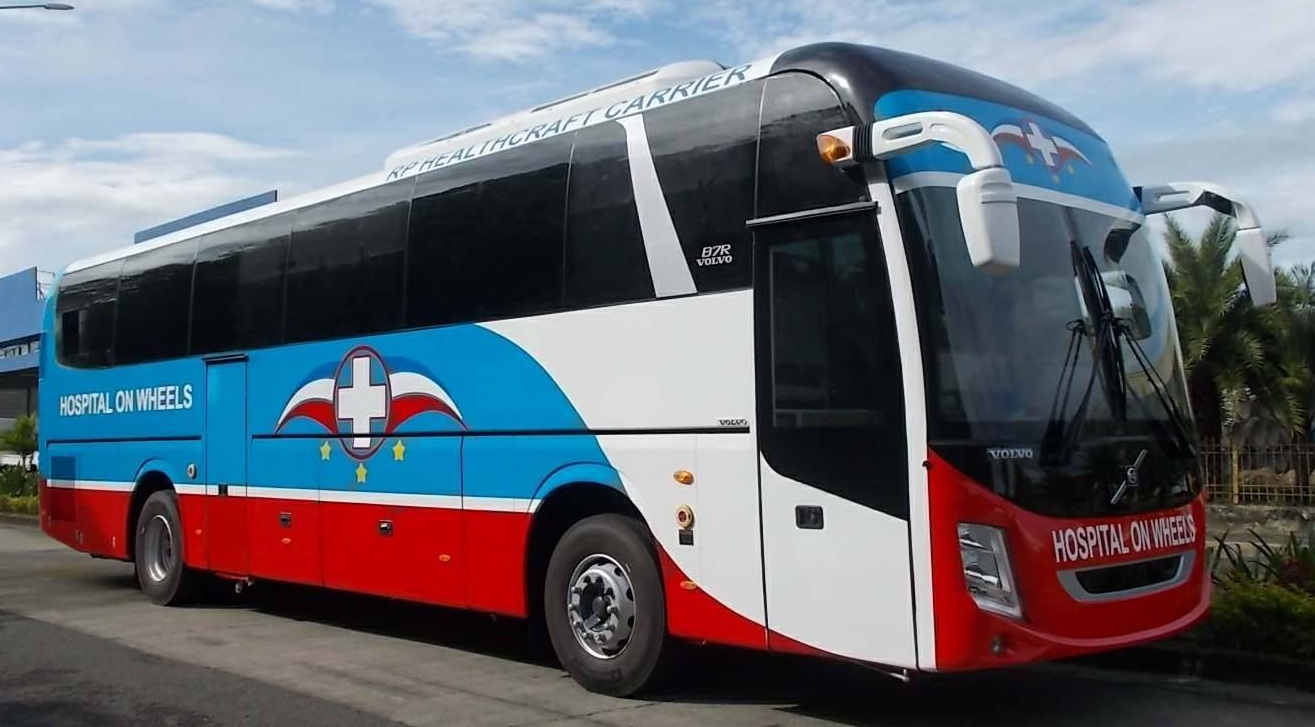 The new Volvo Euro 5 airconditioned bus is well-equipped as an operating room with three operating tables, enabling it to accommodate three surgeries simultaneously. It had its first surgical mission along the ABS-CBN Road, and the event was televised on Philippine national television.